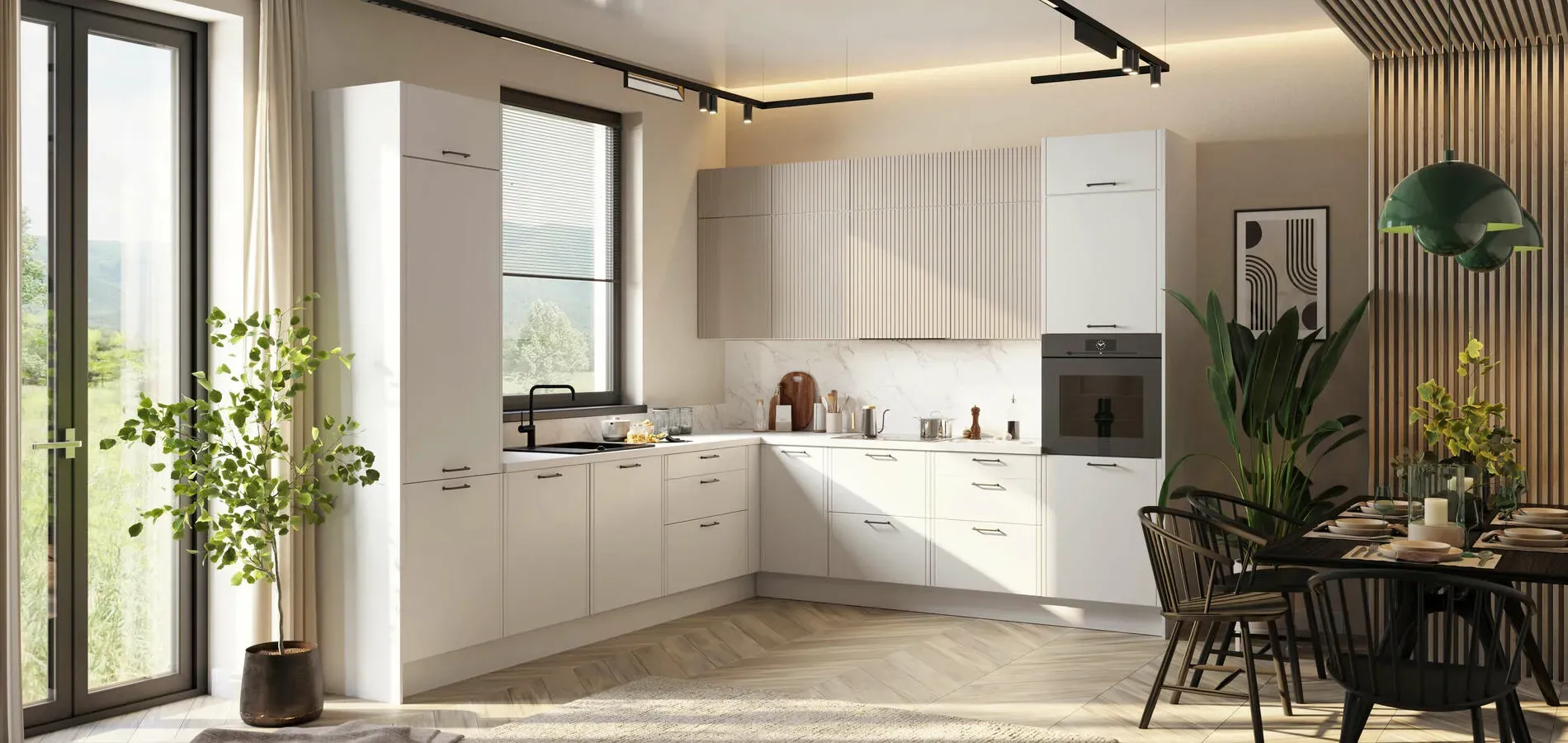 Efekt: „hotelowy” spokój, bardzo dobry w większych kuchniach. -