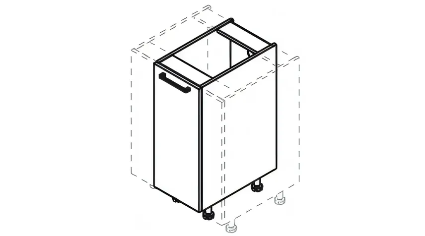 Opcje regulacji szafkiwysokość nóżek 10 lub 15 cm (regulacja +/- 2 cm)