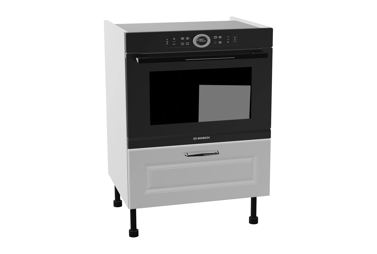 Szafka dolna BDPKST60 z systemu KAMMONO to idealne rozwiązanie do zabudowy piekarnika kompaktowego. Zapewnia stabilne i estetyczne osadzenie urządzenia, a dodatkowa szuflada Blum pod piekarnikiem pozwala na wygodne przechowywanie akcesoriów kuchennych.