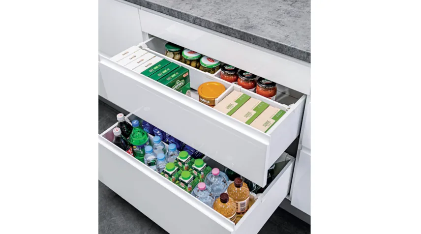 • Organizacja przestrzeni: Trzy pojemne szuflady Slim pomogą utrzymać porządek nawet w małych kuchniach.
