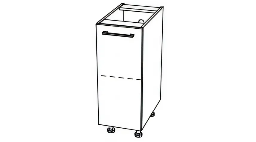 Szafka dolna D… .1 – szer. 30 – 60 cm z jednym frontem występuje w kilku szerokościach do wyboru. To rozwiązanie zapewnia jeszcze lepsze dopasowanie do wymiarów Twojej kuchni i wychodzi naprzeciw Twoim potrzebom.