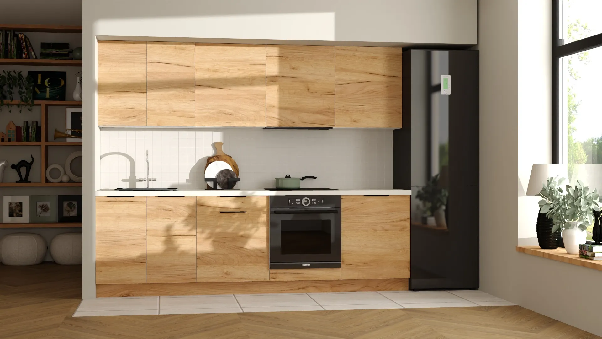 Szafki wyposażone są w ciche domykanie więc fronty zamykają się w sposób lekki i płynny. Zapomnij o trzaskaniu! Podsumowując, prezentowany tani zestaw mebli kuchennych Kam bez wątpienia znajdzie zastosowanie w wielu różnych domach, domkach i mieszkaniach.