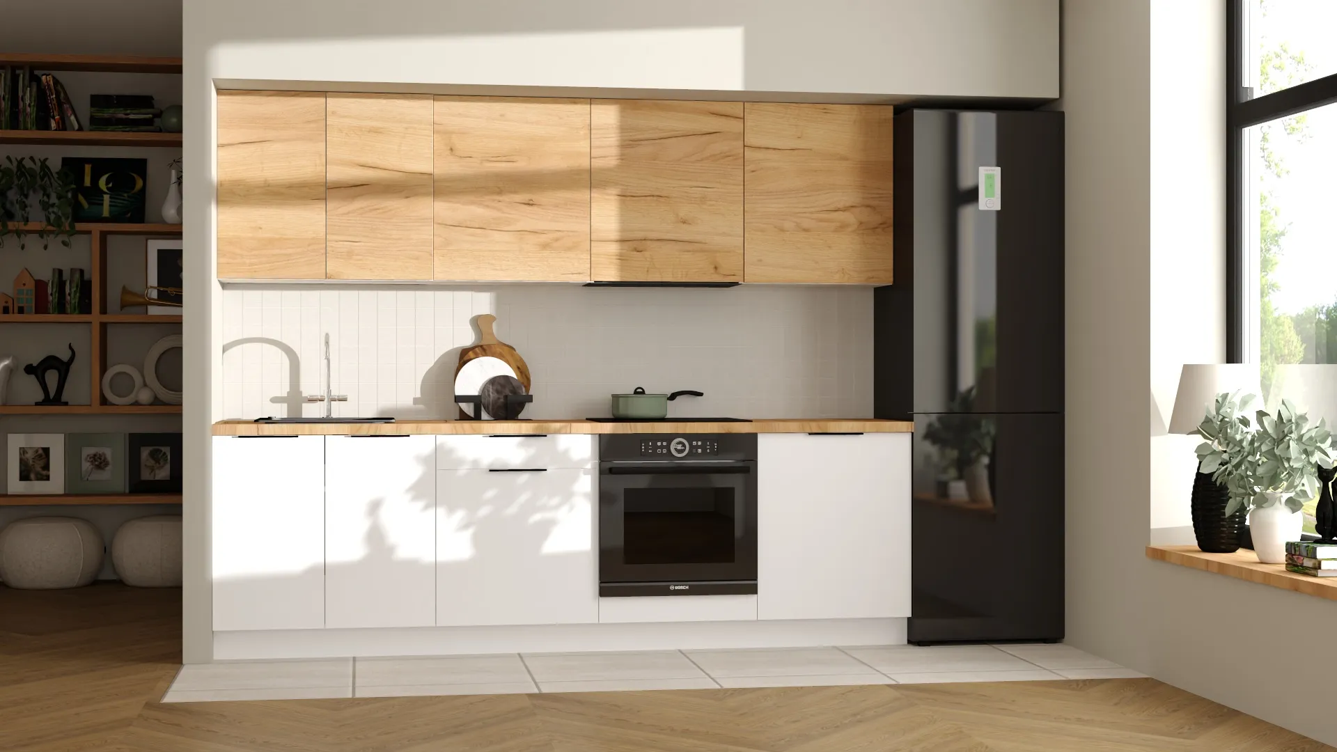 Zestaw mebli kuchennych o długości 260 cm to idealna propozycja funkcjonalnej kuchni jaką daje polski producent mebli – KAM. Zestaw dostępny jest w dwóch kolorach do wyboru tak jak jest to przedstawione na zdjęciach. Możesz dowolnie zestawiać ze sobą te dwa kolory, lub wybrać kuchnię w jednym kolorze – białą lub dąb złoty. Wybór zależy wyłącznie od Ciebie i od Twoich upodobań.