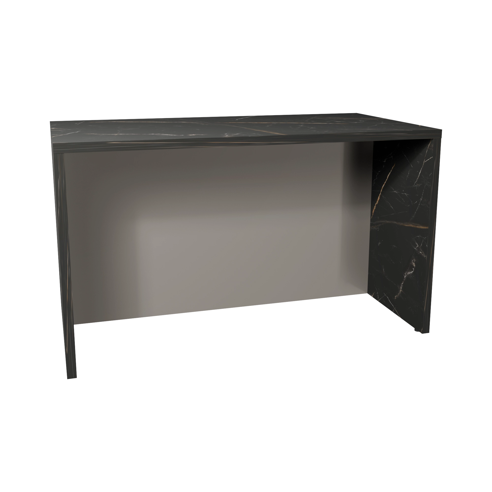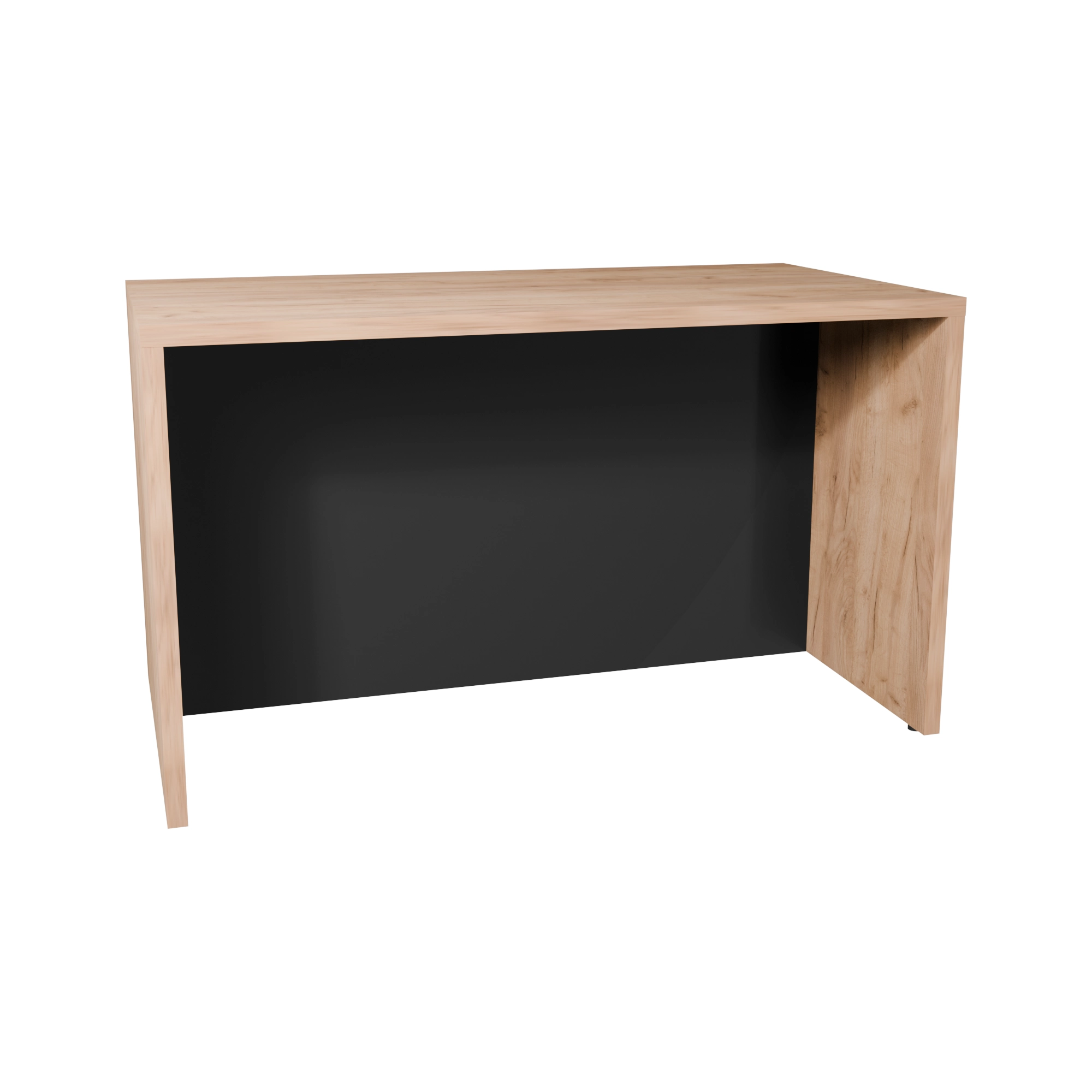 Przegroda wykonana jest z płyty z grupy P4: jedna strona ma wybrany dekor, druga strona jest zawsze biała. Przy planowaniu ustawienia wyspy warto określić, z której strony widoczna będzie strona w kolorze frontów, a gdzie można zaakceptować stronę białą. Rozwiązanie tego typu dobrze sprawdza się w kuchniach, gdzie wyspa jest widoczna z części dziennej i ma zasłaniać korpusy lub szafki podblatowe.