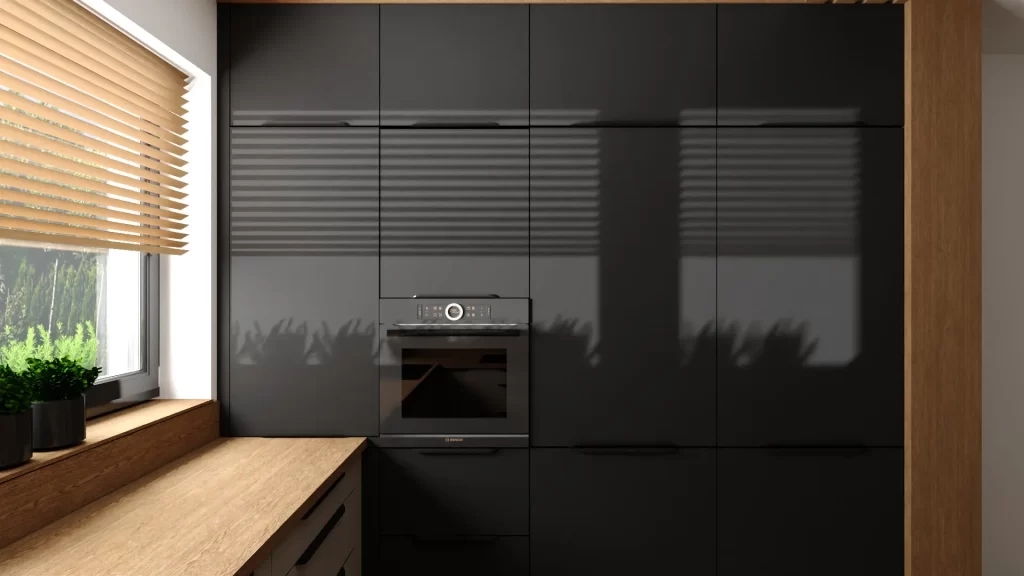 - Estetyka i porządek – brak widocznych opakowań i przypadkowych słoików sprawia, że kuchnia wygląda schludnie i elegancko.